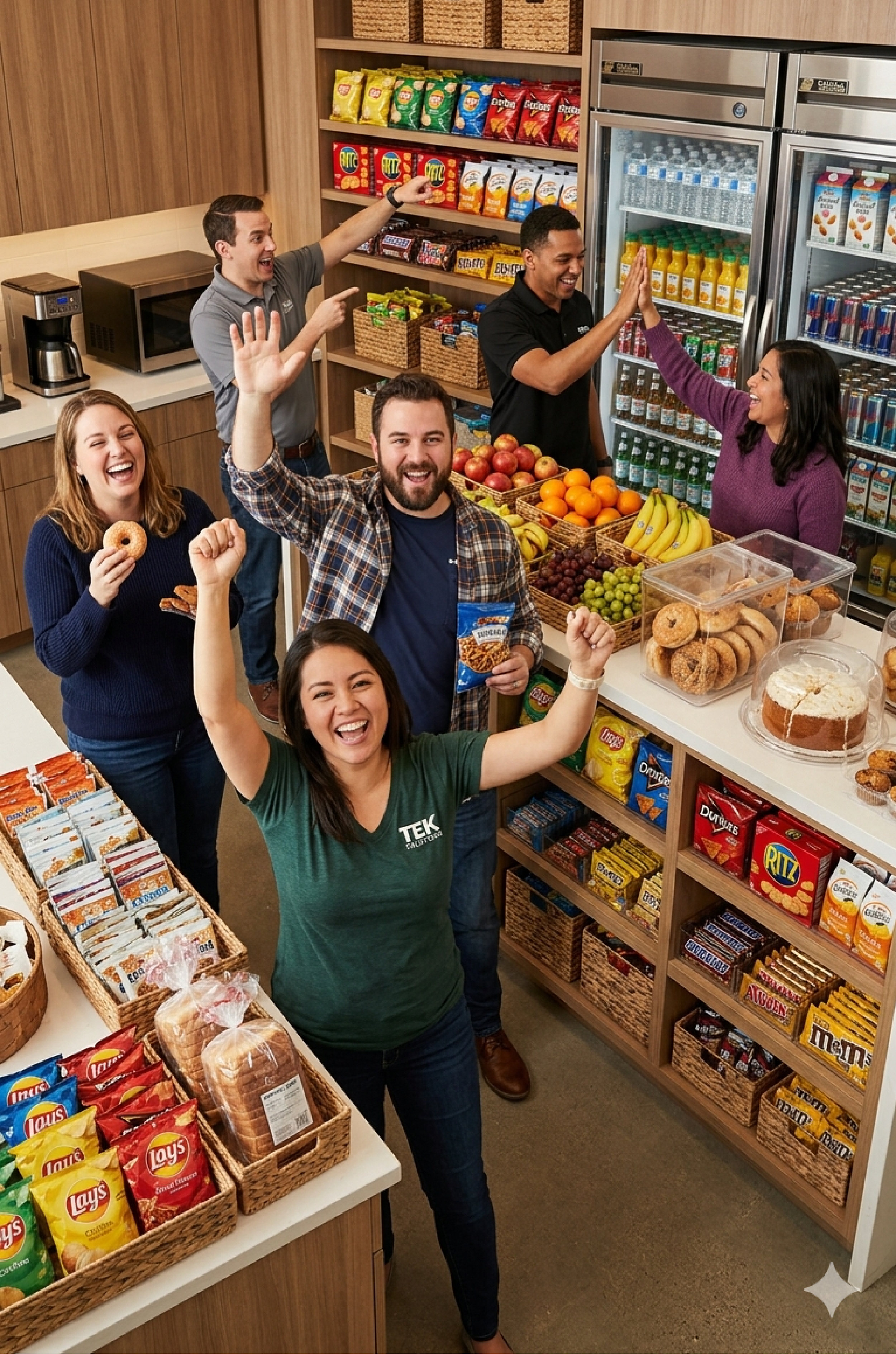 Stocking your breakrooms with food, beverages, snacks, and office supplies.